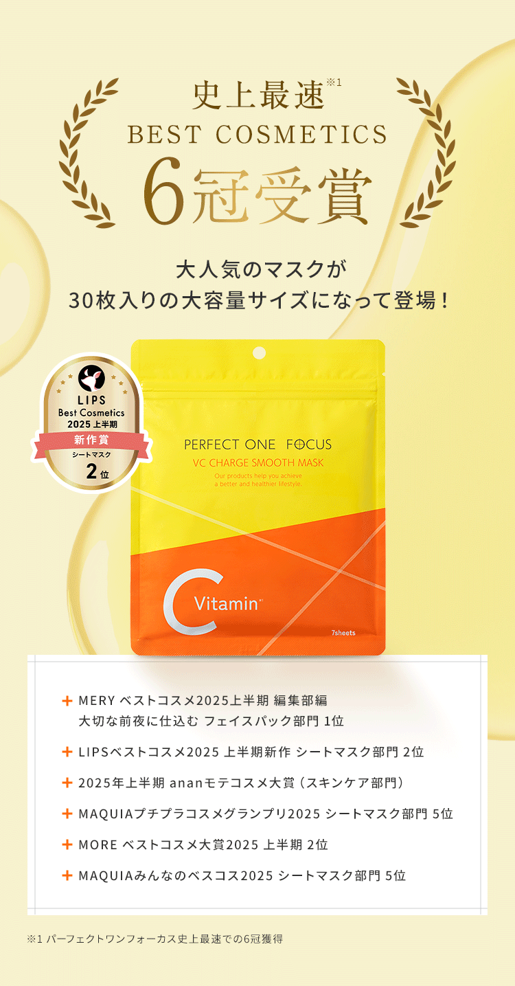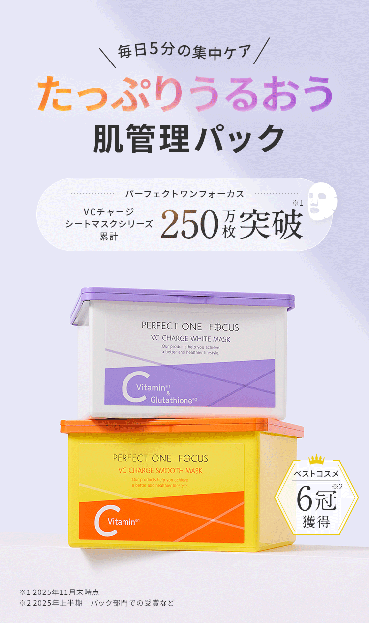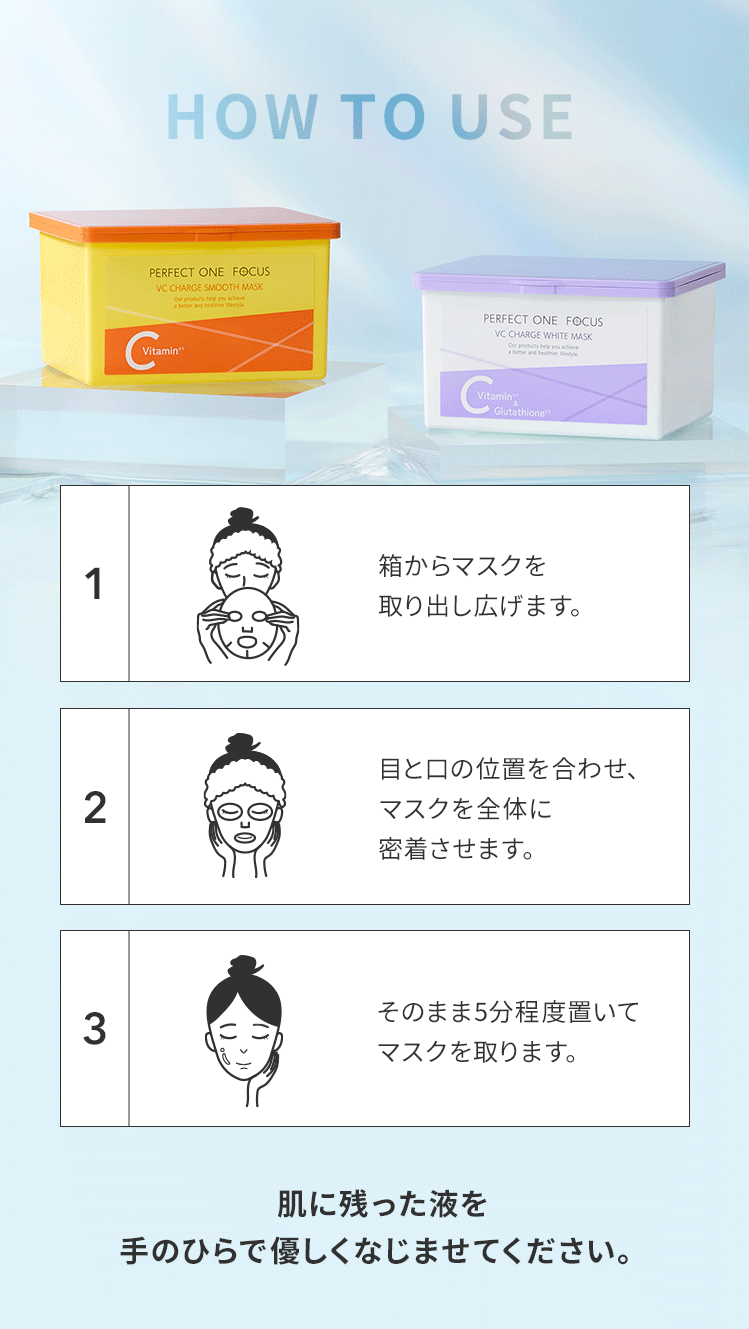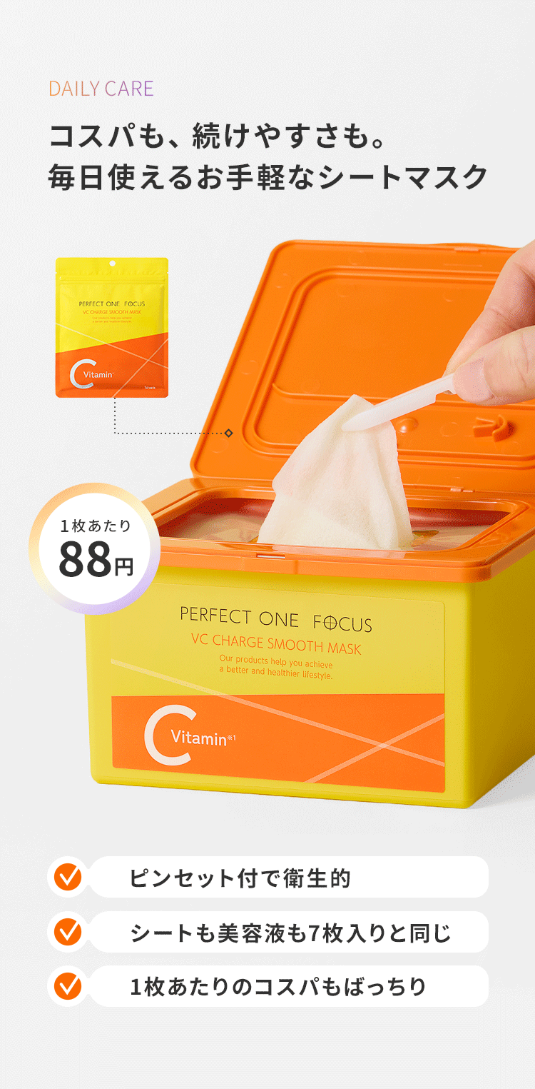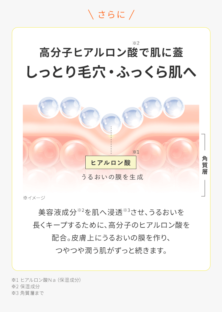 APPS※3やナイアシンアミド※4など、 こだわって厳選したパーフェクトワンフォーカス最多の10種のビタミン※1を配合。たっぷりの潤いをチャージして毛穴※2・透明感※5ケアの両方を叶え、ツヤツヤの輝く肌へ導きます。