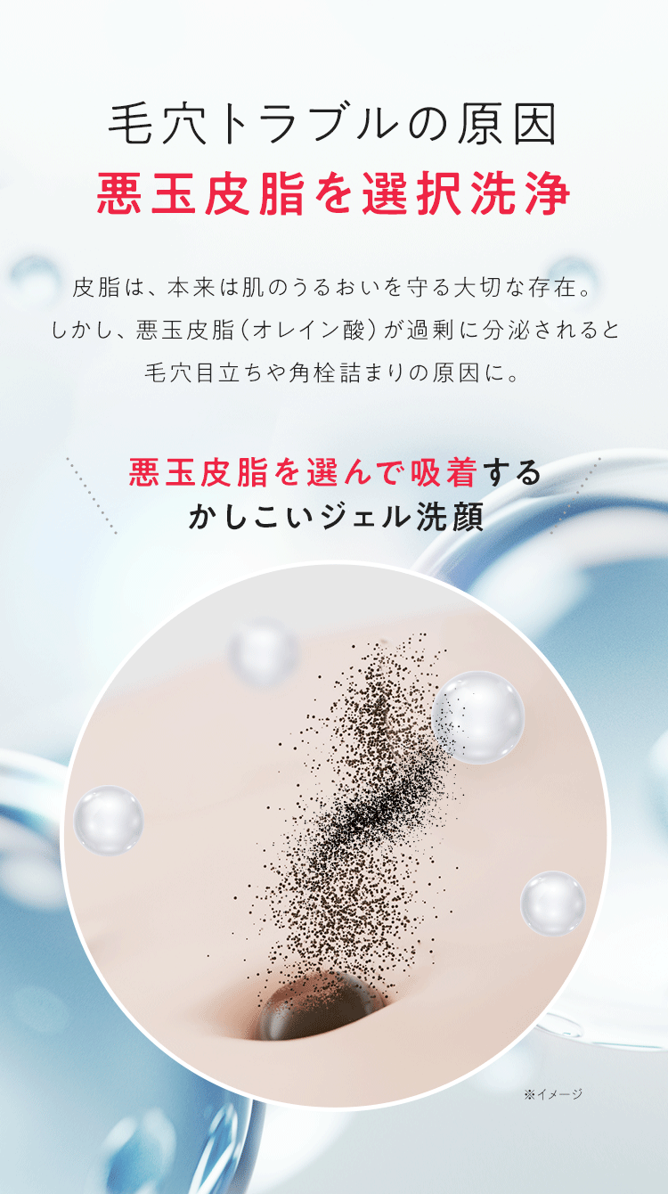 毛穴詰まりの根源『悪玉皮脂』を吸着