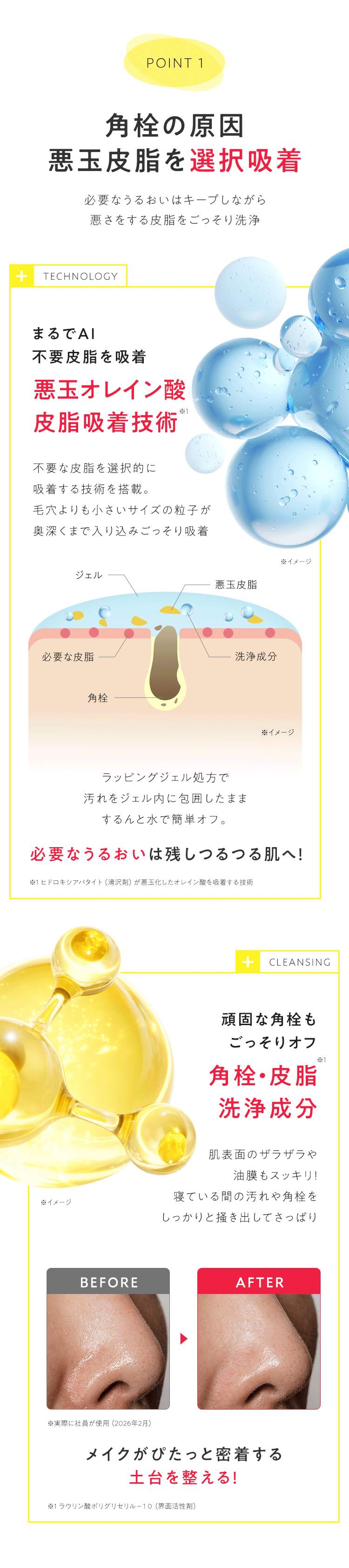 そこで肌に不要な皮脂を選択的に吸着する『悪玉オレイン酸皮脂吸着技術』※3を搭載しました。