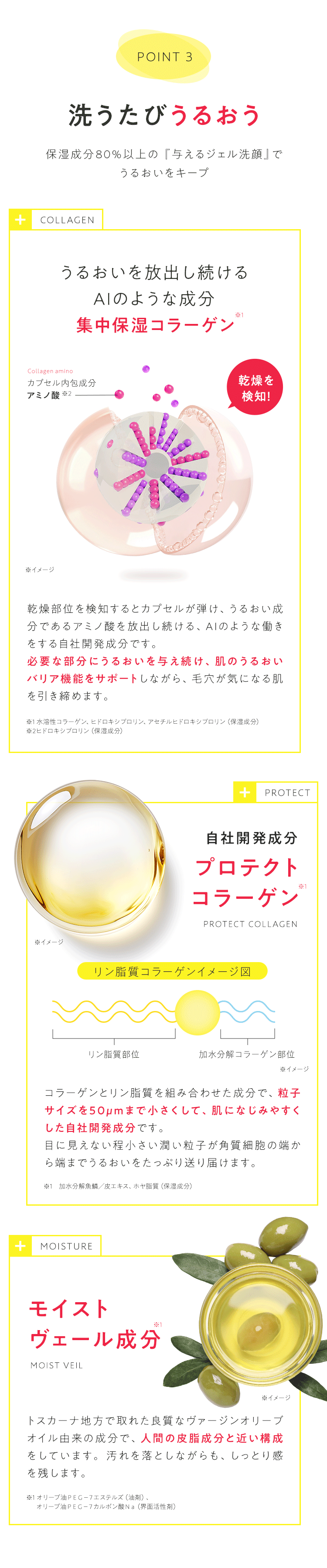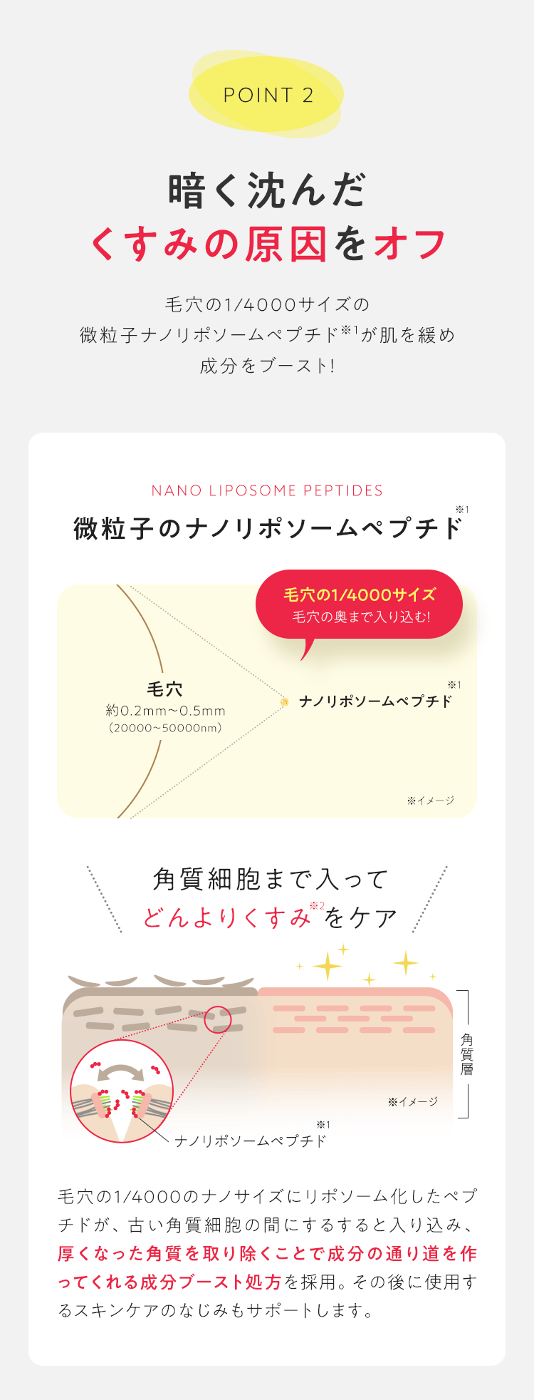 必要なうるおいは残しながら、寝ている間の汚れや角栓をしっかりと掻き出して包み込み、洗い流し、メイクのりの良い肌へ導きます。