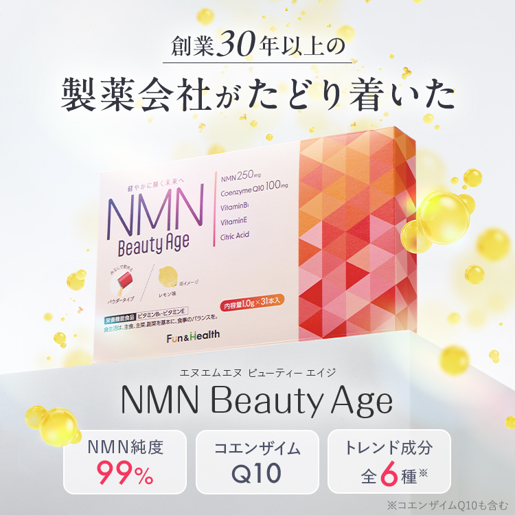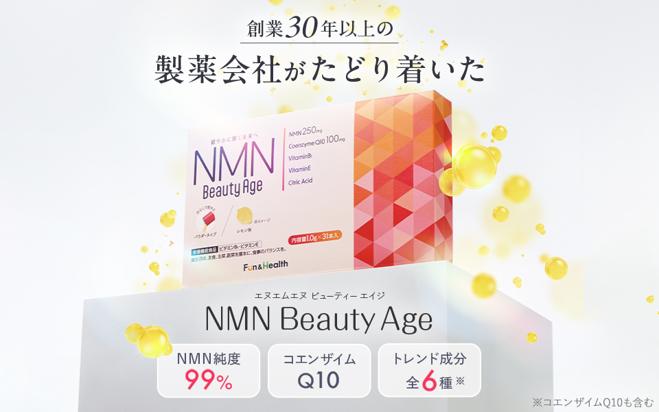 エイジングケア※をサポートする「NMN」とコエンザイムQ10、ビタミンB1、ビタミンE、クエン酸、メロングリソディンを配合し、美と健康をサポート!