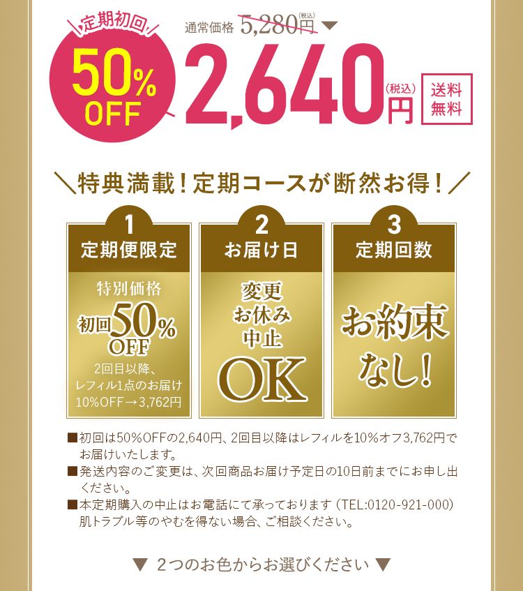 • ・定期購入はステージ毎に割引率が異なり、毎回10~20%OFFとなります。
