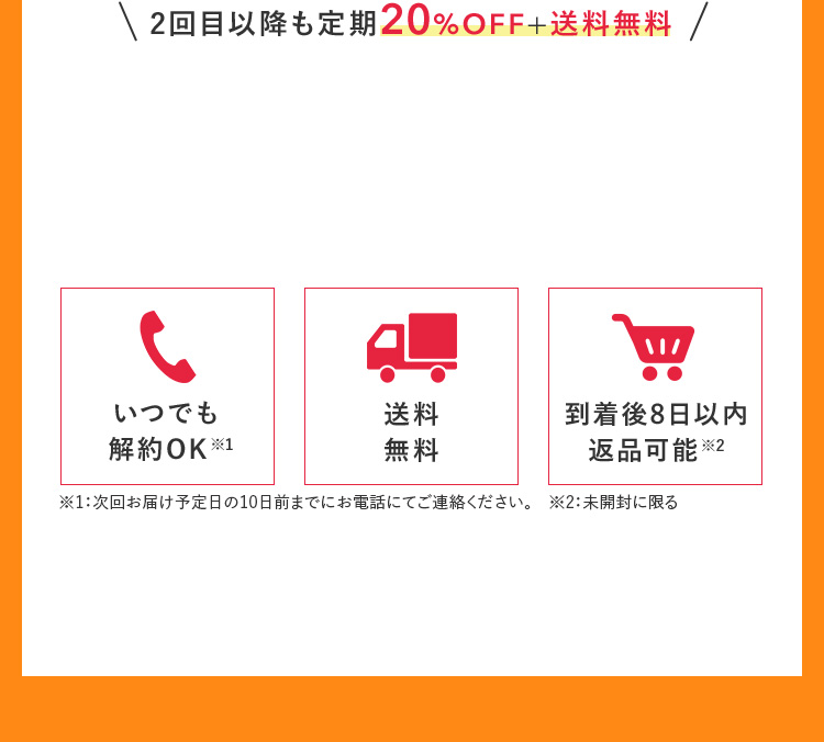 1 返品・交換は、未開封のもので、商品到着後8日以内にお電話でご連絡いただいた場合に限り承ります。ただし、お客さまのご都合による返品・交換の際は、返送料・返金手数料はお客さまのご負担となります。