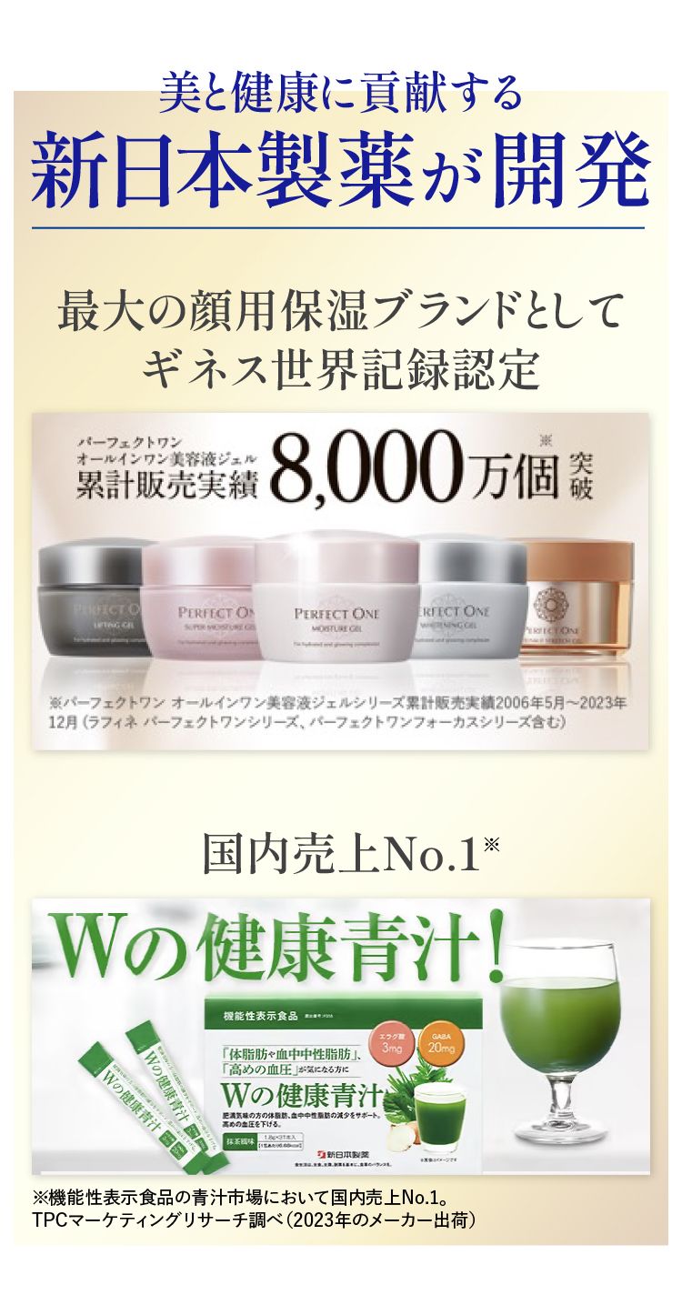 2 新日本製薬の直営店以外のお店や、新日本製薬オンラインショップ以外のオークションサイト、業者や個人のサイト等で仮に新日本製薬商品やサンプルが売られていたとしても、どのような状態で商品の管理がなされていたか等、新日本製薬としては把握できませんので、商品の品質、機能、形状その他の事項について一切責任をもつことができません。また、アフターサービスについても応じることはできませんので、ご注意ください。