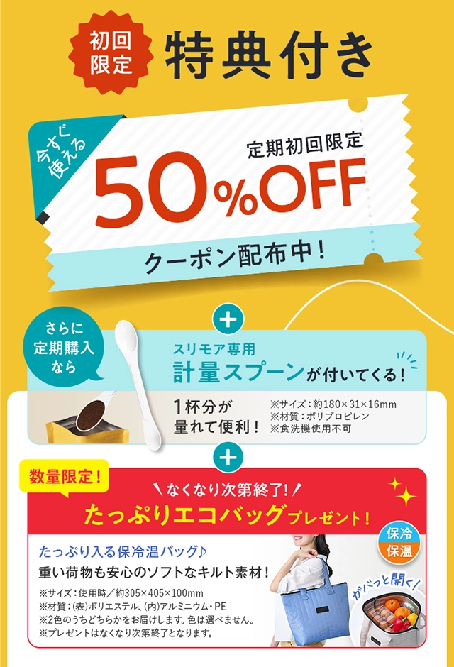 • ・Slimore Coffee(スリモアコーヒー)のステージ毎の定期価格は以下となります。(消費税込価格)