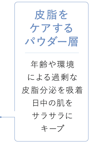 ※1:テカリ防止パウダー(メタクリル酸メチルクロスポリマー、酸化亜鉛(吸着剤))の皮脂吸着効果による