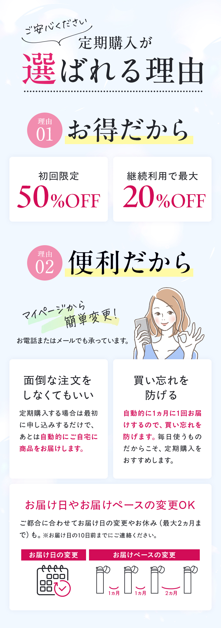 - ・初回以降は、中止のお申し出がなければ自動継続となります。