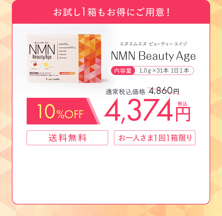 - ・NMN Beauty Ageのステージ毎の定期価格は以下となります。(消費税込価格・送料込)