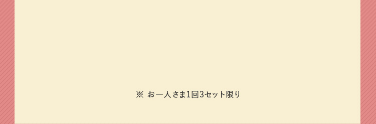 - 定期購入は3回以上の継続購入※が必要となり、4回目以降は自動更新となります。定期購入のお届けサイクルは「毎月」か「2ヵ月ごと(隔月)」となっております。「2ヵ月ごと(隔月)」をご希望の方はお問い合わせフォームよりご連絡ください。お休みは、お届けサイクルが「毎月」の方は2回まで、お届けサイクルが「2ヵ月ごと(隔月)」の方は1回までとさせていただきます。お届けサイクルの変更や商品変更・ご購入の停止は次回商品お届け予定日の10日前までにお申し出ください。