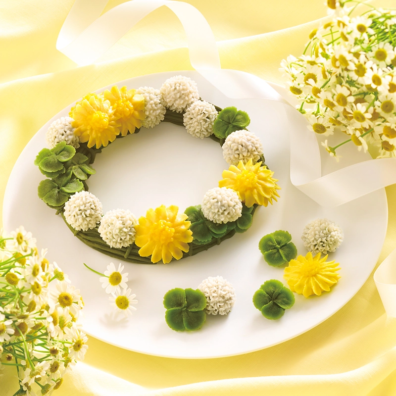 「幸運」、「真実の愛」などの花言葉を持つシロツメグサとマーガレットで、かわいらしい花冠をつくりました。幸運に恵まれる春になりますように。