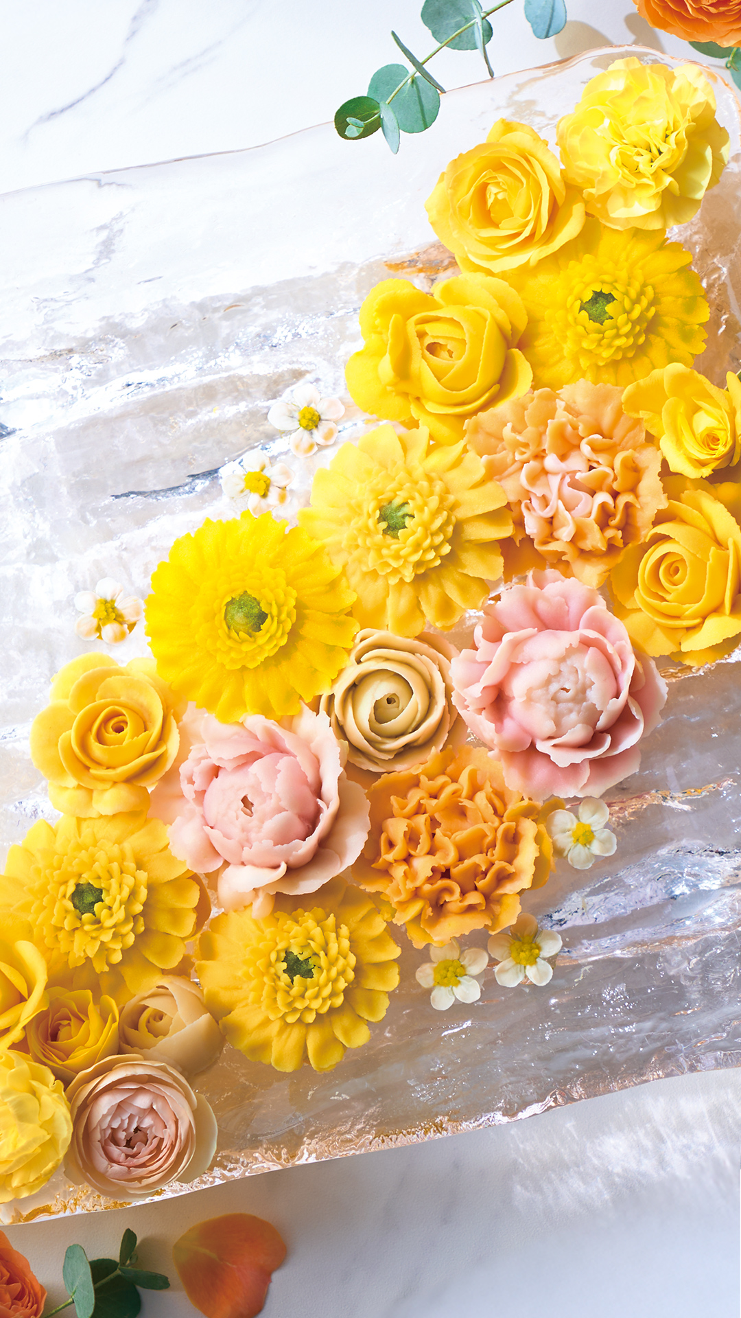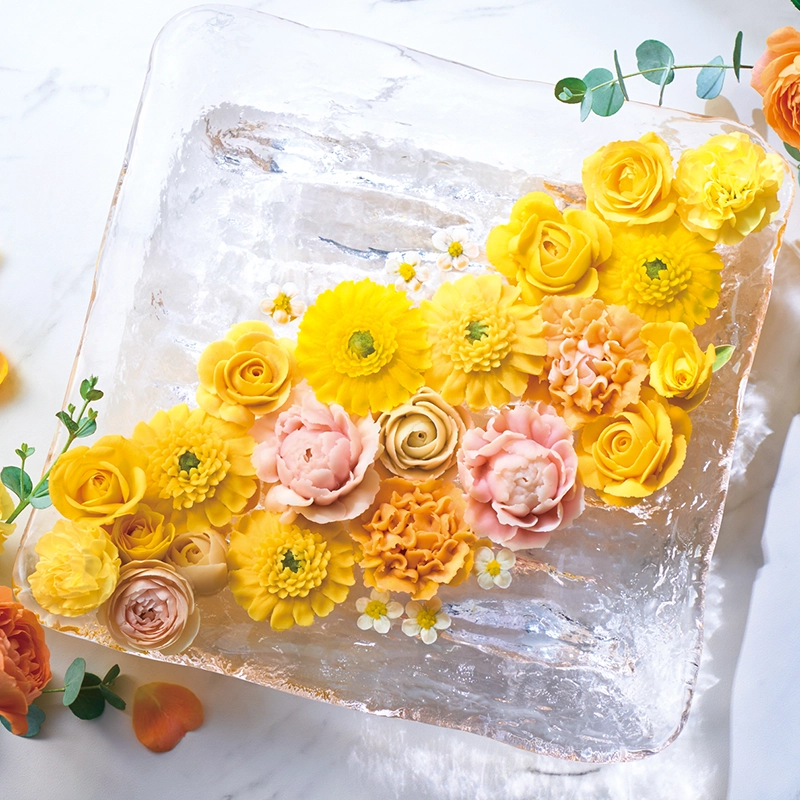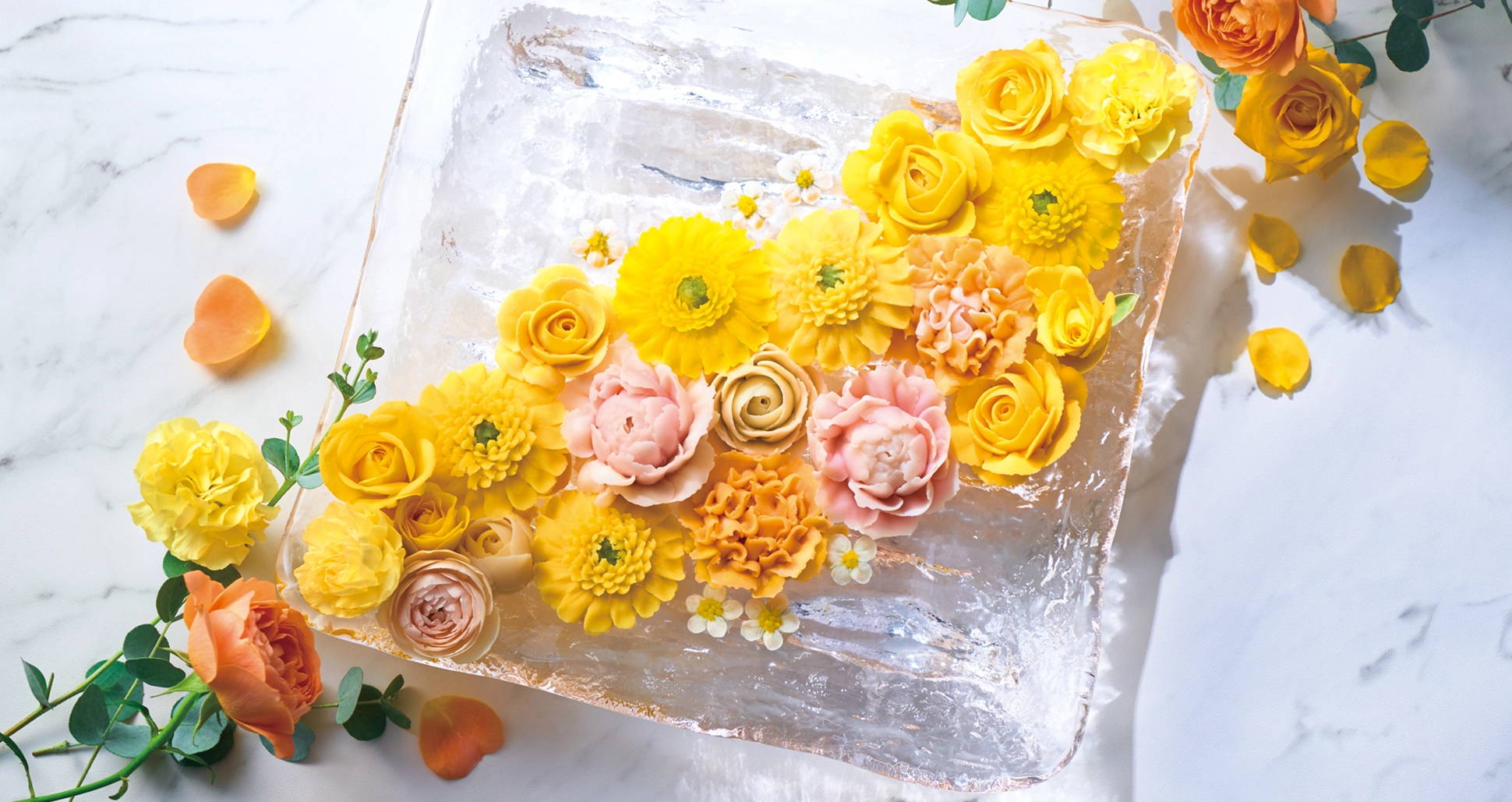 涼しげなガラスの器の中で生き生きと咲くあんフラワーたち。「希望」、「愛」、「感謝」の花言葉をもつ花たちと共に、この夏の思い出をより鮮やかに彩りませんか。