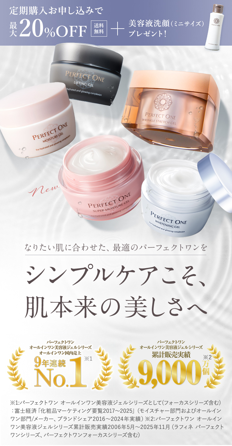 - 定期購入の中止は4回目以降より承っております(「医薬品」及び「パーフェクトワン フォーカスシリーズ」を除く)。(肌トラブル等の場合などやむを得ない場合、ご相談ください。)3回継続後、お客さまより当社に中止のお申し出がない場合、本契約は自動更新するものとし、以後も同様とします。